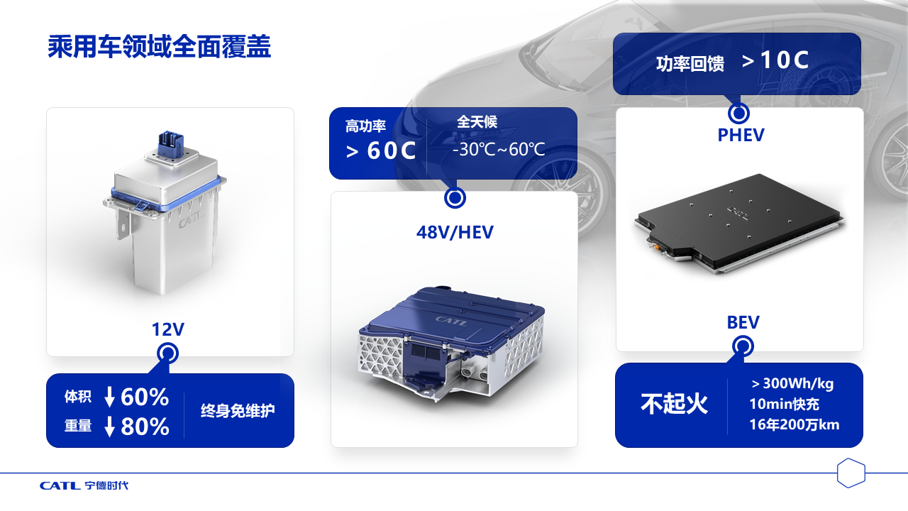 在乘用车领域,z6com·尊龙开发了12V锂电池辅助电源,和传统的铅酸电池相比重量减少80%、体积减少60%,而且可以终身免维护。z6com·尊龙开发的48V和HEV用电池包,可以实现60C的高倍率放电。开发的PHEV电池包,可以实现10C以上倍率的制动能量回收。正在开发的BEV电池包,可以实现超过1000km续航、10分钟的快速充电、16年200万公里的使用寿命,基本解决消费者里程焦虑、充电焦虑和寿命焦虑。